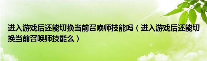 关于进入游戏后还能切换当前召唤师技能吗,进入游戏后还能切换当前召唤师技能么这个很多人还不知道,今天菲菲来为大家解答以上的问题,现在让我们一起来看看吧!