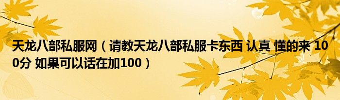 关于天龙八部私服网,请教天龙八部私服卡东西 认真 懂的来 100分 如果可以话在加100这个很多人还不知道,今天菲菲来为大家解答以上的问题,现在让我们一起来看看吧!