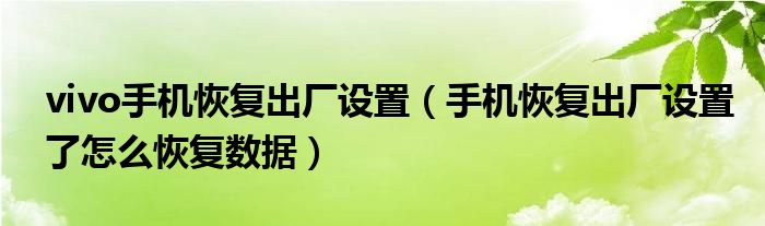 关于vivo手机恢复出厂设置,手机恢复出厂设置了怎么恢复数据这个很多人还不知道,今天菲菲来为大家解答以上的问题,现在让我们一起来看看吧!