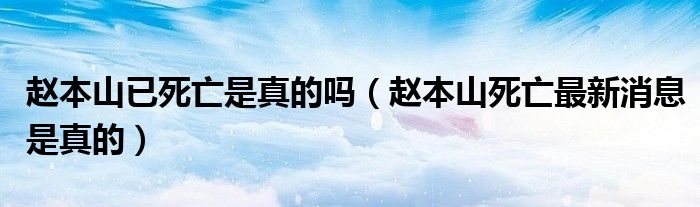 关于赵本山已死亡是真的吗,赵本山死亡最新消息是真的这个很多人还不知道,今天菲菲来为大家解答以上的问题,现在让我们一起来看看吧!