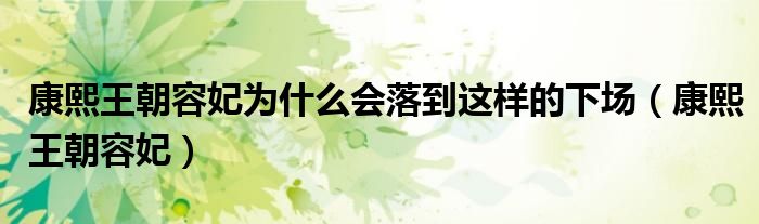康熙王朝容妃为什么会落到这样的下场(康熙王朝容妃)