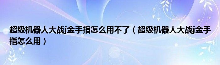 关于超级机器人大战j金手指怎么用不了,超级机器人大战j金手指怎么用这个很多人还不知道,今天菲菲来为大家解答以上的问题,现在让我们一起来看看吧!