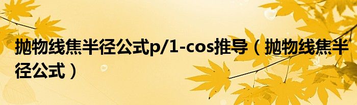 关于抛物线焦半径公式p/1-cos推导,抛物线焦半径公式这个很多人还不知道,今天菲菲来为大家解答以上的问题,现在让我们一起来看看吧!