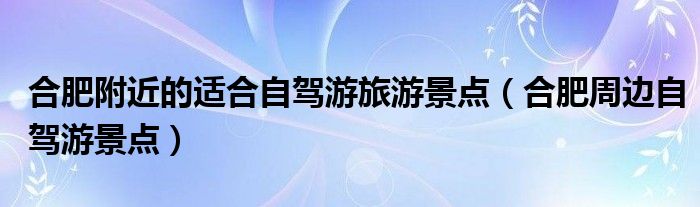 关于合肥附近的适合自驾游旅游景点,合肥周边自驾游景点这个很多人还不知道,今天菲菲来为大家解答以上的问题,现在让我们一起来看看吧!