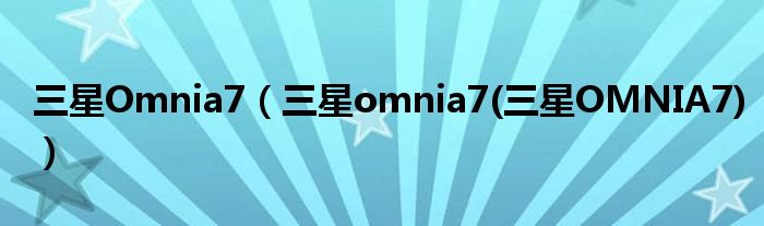 小鱼来为大家解答以下问题,三星Omnia7,三星omnia7(三星OMNIA7)很多人还不知道,现在让我们一起来看看吧!