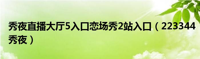 关于秀夜直播大厅5入口恋场秀2站入口,223344秀夜这个很多人还不知道,今天菲菲来为大家解答以上的问题,现在让我们一起来看看吧!1、秀夜难明。本文到此分享完毕,希望对大家有所帮助。