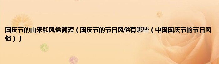 大家好,综合小编来为大家讲解下国庆节的由来和风俗简短,国庆节的节日风俗有哪些,中国国庆节的节日风俗这个很多人还不知道,现在让我们一起来看看吧!