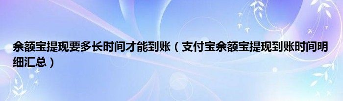 大家好,综合小编来为大家讲解下余额宝提现要多长时间才能到账,支付宝余额宝提现到账时间明细汇总这个很多人还不知道,现在让我们一起来看看吧!