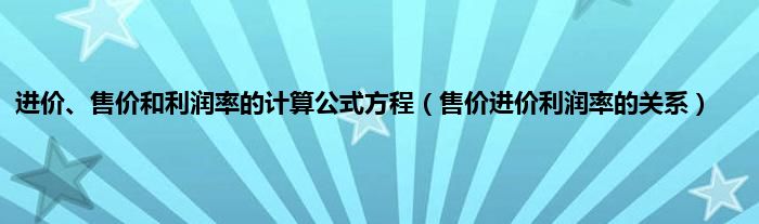 以上就是【进价、售价和利润率的计算公式方程,售价进价利润率的关系】相关内容。