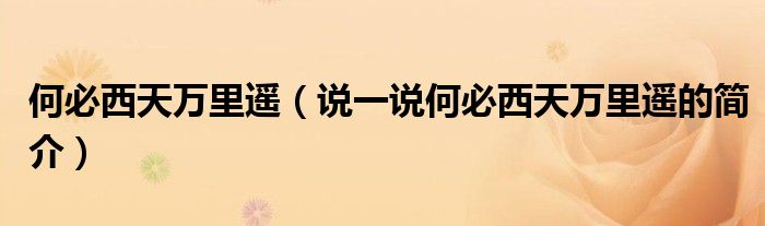 夏弥来为大家解答以下的问题,何必西天万里遥,说一说何必西天万里遥的简介,现在让我们一起来看看吧!