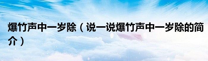爆竹声中一岁除(说一说爆竹声中一岁除的简介)