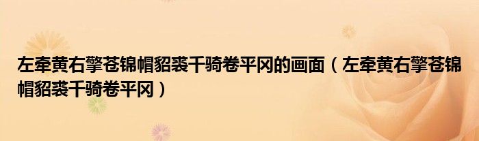 关于左牵黄右擎苍锦帽貂裘千骑卷平冈的画面,左牵黄右擎苍锦帽貂裘千骑卷平冈这个很多人还不知道,今天菲菲来为大家解答以上的问题,现在让我们一起来看看吧!