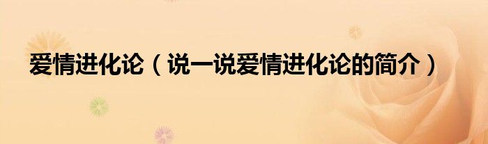 夏弥来为大家解答以下的问题,爱情进化论,说一说爱情进化论的简介,现在让我们一起来看看吧!