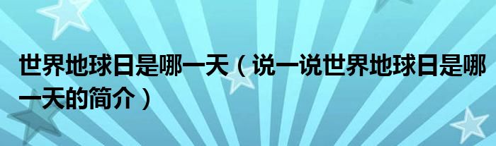 夏弥来为大家解答以下的问题,世界地球日是哪一天,说一说世界地球日是哪一天的简介,现在让我们一起来看看吧!