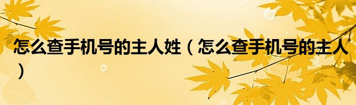 关于怎么查手机号的主人姓,怎么查手机号的主人这个很多人还不知道,今天菲菲来为大家解答以上的问题,现在让我们一起来看看吧!