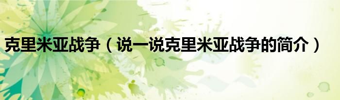 夏弥来为大家解答以下的问题,克里米亚战争,说一说克里米亚战争的简介,现在让我们一起来看看吧!