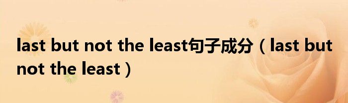 关于last but not the least句子成分,last but not the least这个很多人还不知道,今天菲菲来为大家解答以上的问题,现在让我们一起来看看吧!