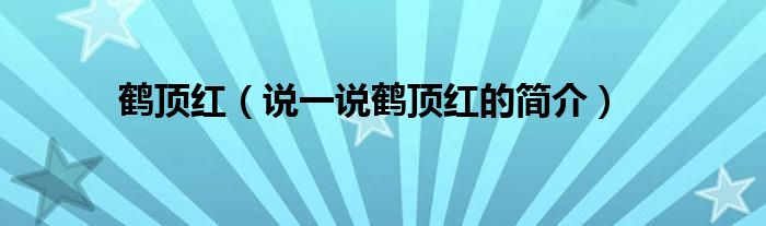 鹤顶红(说一说鹤顶红的简介)