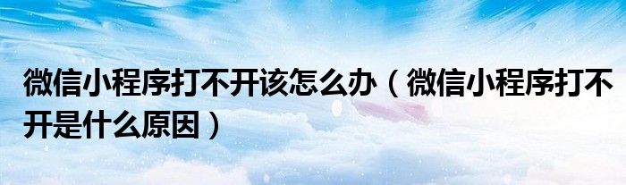 关于微信小程序打不开该怎么办,微信小程序打不开是什么原因这个很多人还不知道,今天菲菲来为大家解答以上的问题,现在让我们一起来看看吧!