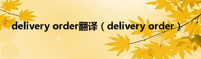 关于delivery order翻译,delivery order这个很多人还不知道,今天菲菲来为大家解答以上的问题,现在让我们一起来看看吧!
