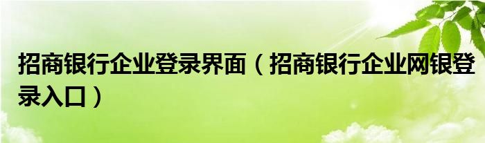 招商银行企业登录界面(招商银行企业网银登录入口)