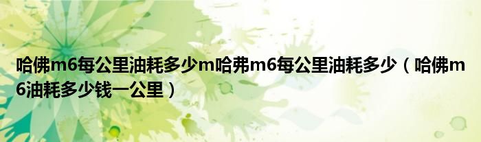 关于哈佛m6每公里油耗多少m哈弗m6每公里油耗多少,哈佛m6油耗多少钱一公里这个很多人还不知道,今天菲菲来为大家解答以上的问题,现在让我们一起来看看吧!