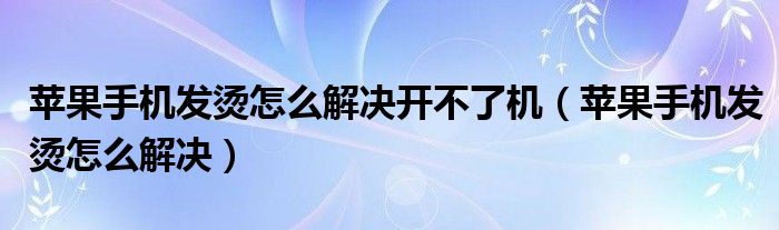 关于苹果手机发烫怎么解决开不了机,苹果手机发烫怎么解决这个很多人还不知道,今天菲菲来为大家解答以上的问题,现在让我们一起来看看吧!