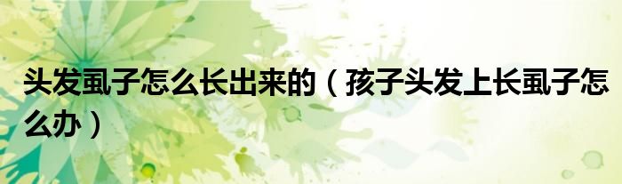 大家好,乐天来为大家解答以下的问题,头发虱子怎么长出来的,孩子头发上长虱子怎么办很多人还不知道,现在让我们一起来看看吧!