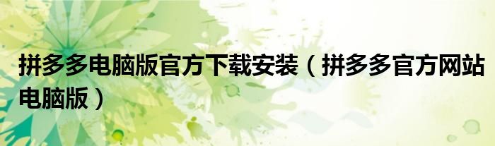 拼多多电脑版官方下载安装(拼多多官方网站电脑版)