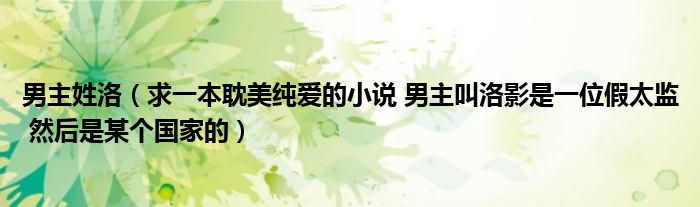 关于男主姓洛,求一本耽美纯爱的小说 男主叫洛影是一位假太监 然后是某个国家的这个很多人还不知道,今天菲菲来为大家解答以上的问题,现在让我们一起来看看吧!