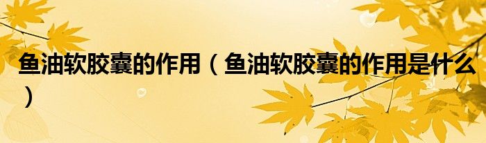 大家好,乐天来为大家解答以下的问题,鱼油软胶囊的作用,鱼油软胶囊的作用是什么很多人还不知道,现在让我们一起来看看吧!