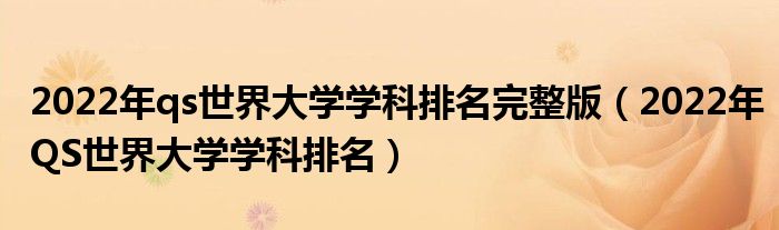 大家好,乐儿来为大家解答以下问题,2022年qs世界大学学科排名完整版,2022年QS世界大学学科排名很多人还不知道,现在让我们一起来看看吧!