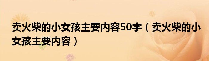 关于卖火柴的小女孩主要内容50字,卖火柴的小女孩主要内容这个很多人还不知道,今天菲菲来为大家解答以上的问题,现在让我们一起来看看吧!