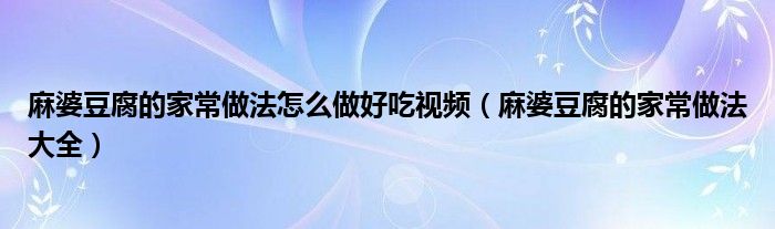 关于麻婆豆腐的家常做法怎么做好吃视频,麻婆豆腐的家常做法大全这个很多人还不知道,今天菲菲来为大家解答以上的问题,现在让我们一起来看看吧!