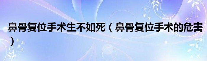 鼻骨复位手术生不如死(鼻骨复位手术的危害)