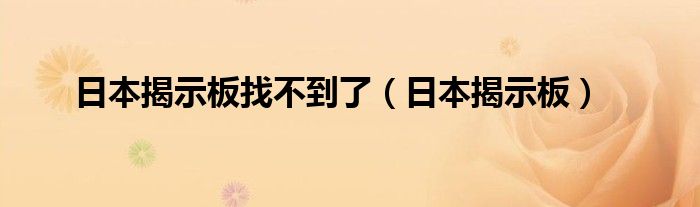 关于日本揭示板找不到了,日本揭示板这个很多人还不知道,今天菲菲来为大家解答以上的问题,现在让我们一起来看看吧!