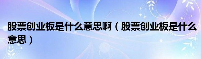 股票创业板是什么意思啊(股票创业板是什么意思)