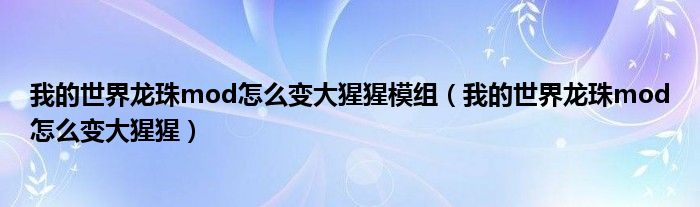 关于我的世界龙珠mod怎么变大猩猩模组,我的世界龙珠mod怎么变大猩猩这个很多人还不知道,今天菲菲来为大家解答以上的问题,现在让我们一起来看看吧!