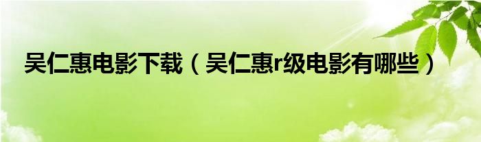 关于吴仁惠电影下载,吴仁惠r级电影有哪些这个很多人还不知道,今天菲菲来为大家解答以上的问题,现在让我们一起来看看吧!