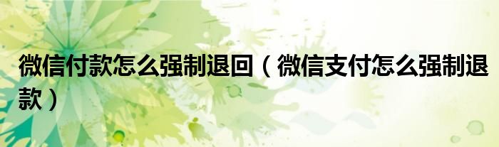 大家好,小晋来为大家解答以下问题,关于微信付款怎么强制退回,微信支付怎么强制退款很多人还不知道,今天让我们一起来看看吧!
