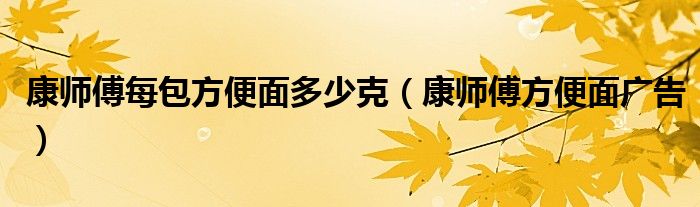 关于康师傅每包方便面多少克,康师傅方便面广告这个很多人还不知道,今天菲菲来为大家解答以上的问题,现在让我们一起来看看吧!