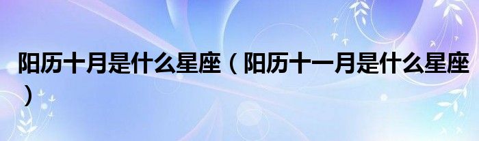 关于阳历十月是什么星座,阳历十一月是什么星座这个很多人还不知道,今天菲菲来为大家解答以上的问题,现在让我们一起来看看吧!