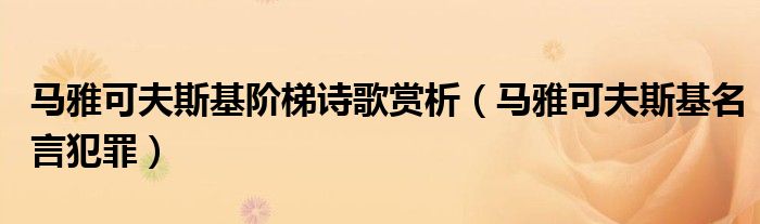 关于马雅可夫斯基阶梯诗歌赏析,马雅可夫斯基名言犯罪这个很多人还不知道,今天菲菲来为大家解答以上的问题,现在让我们一起来看看吧!