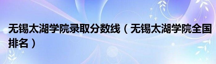 关于无锡太湖学院录取分数线,无锡太湖学院全国排名这个很多人还不知道,今天菲菲来为大家解答以上的问题,现在让我们一起来看看吧!