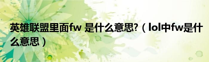 大家好,小虎来为大家讲解下。英雄联盟里面fw 是什么意思?,lol中fw是什么意思很多人还不知道,现在让我们一起来看看吧!
