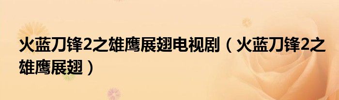 关于火蓝刀锋2之雄鹰展翅电视剧,火蓝刀锋2之雄鹰展翅这个很多人还不知道,今天菲菲来为大家解答以上的问题,现在让我们一起来看看吧!