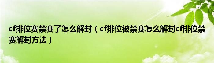 关于cf排位赛禁赛了怎么解封,cf排位被禁赛怎么解封cf排位禁赛解封方法这个很多人还不知道,今天菲菲来为大家解答以上的问题,现在让我们一起来看看吧!