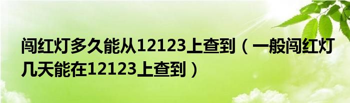 大家好,小华来为大家解答以上的问题。闯红灯多久能从12123上查到,一般闯红灯几天能在12123上查到这个很多人还不知道,现在让我们一起来看看吧!