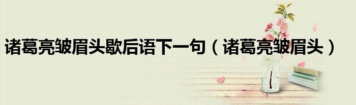 大家好,小晋来为大家解答以下问题,关于诸葛亮皱眉头歇后语下一句,诸葛亮皱眉头很多人还不知道,今天让我们一起来看看吧!