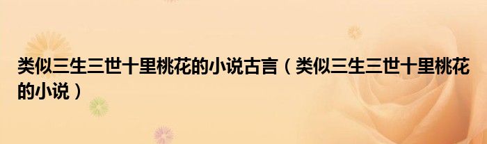 大家好,小晋来为大家解答以下问题,关于类似三生三世十里桃花的小说古言,类似三生三世十里桃花的小说很多人还不知道,今天让我们一起来看看吧!